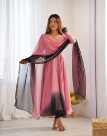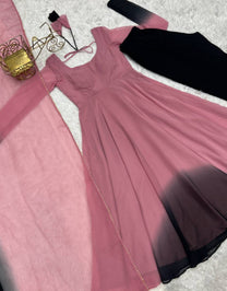 Pink & Black Heavy Pure Soft Fox Georgette Colorful Gown with Dupatta